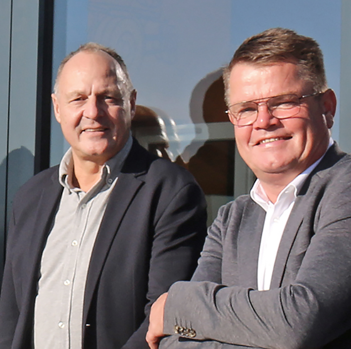 CEO Jan K. Møller (til højre) og direktør Leif Rudebeck Petersen er i spidsen for Johs. Møllers Maskiner A/S i 60 års jubilæumsåret.