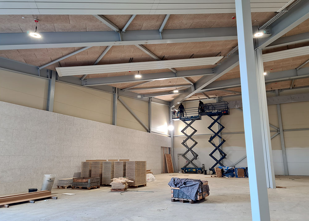 Vi opfører alle typer erhvervsbyggeri: Lagerhal, industrihal, produktionshal, kontorbyggeri, domicilbyggeri, værksted, maskinhal, bilhuse, showroom og alle typer sportshaller. F.eks. har vi opført flere padelhaller rundt i hele Danmark.