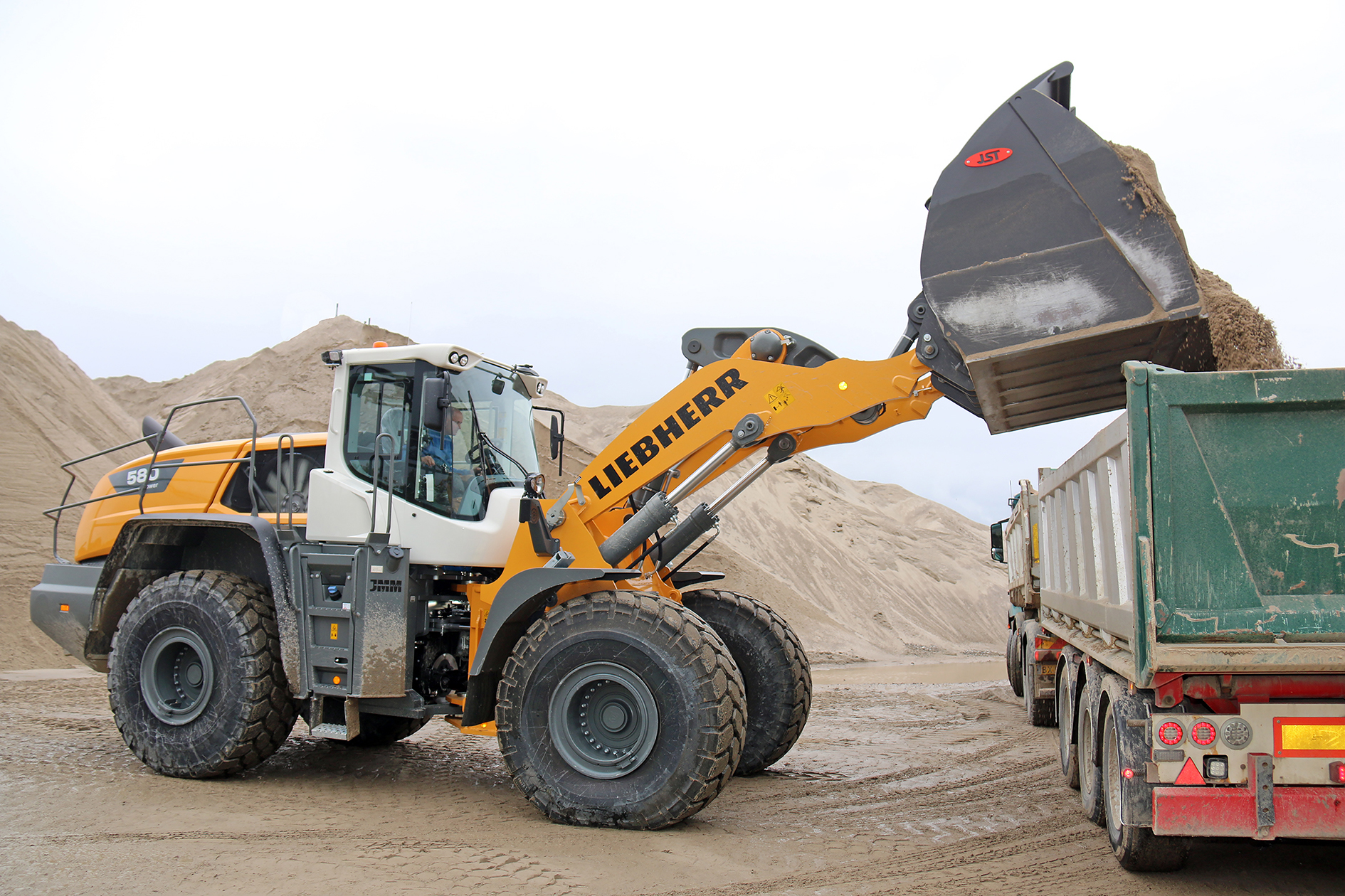 28 tons Liebherr L580 XPower med en 7,2 kubikmeter skovl i gang med at læsse hos JJ Råstoffer.