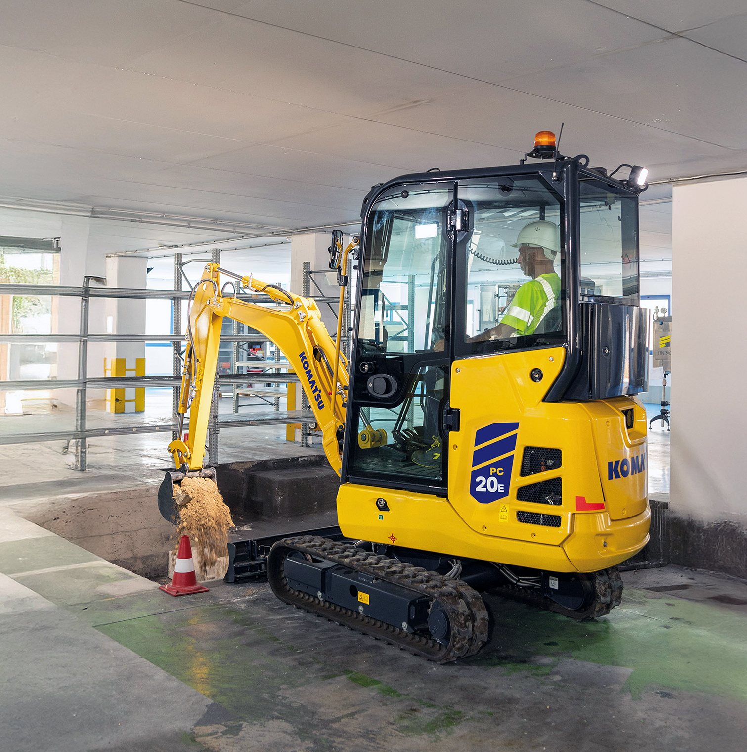 1. Den mindste i Komatsus trekløver af elektriske minigravere. PC20E på indendørs, emissionsfri opgave.