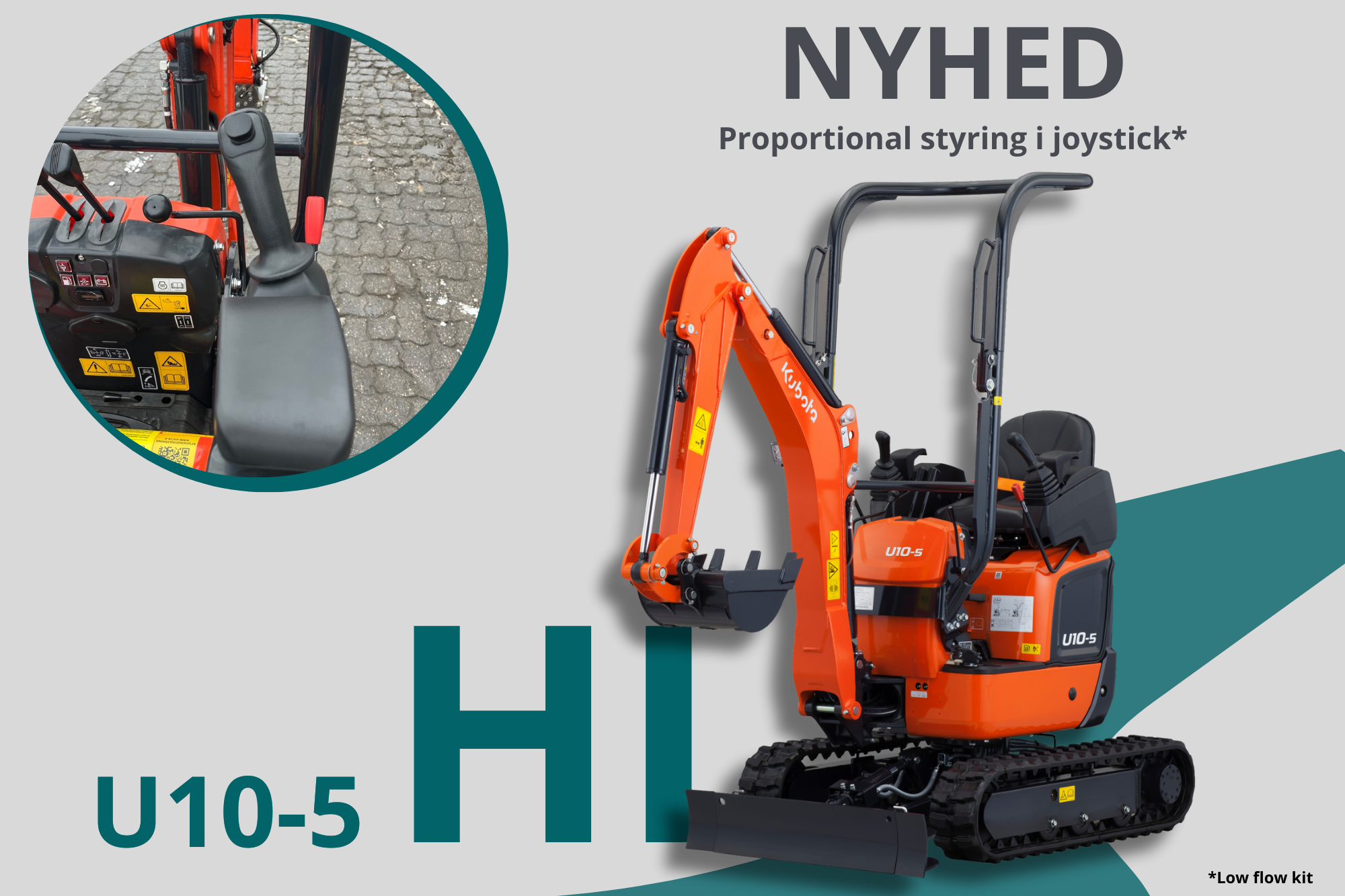 Proportionalstyring i joysticket på den nye Kubota U10-5 HI