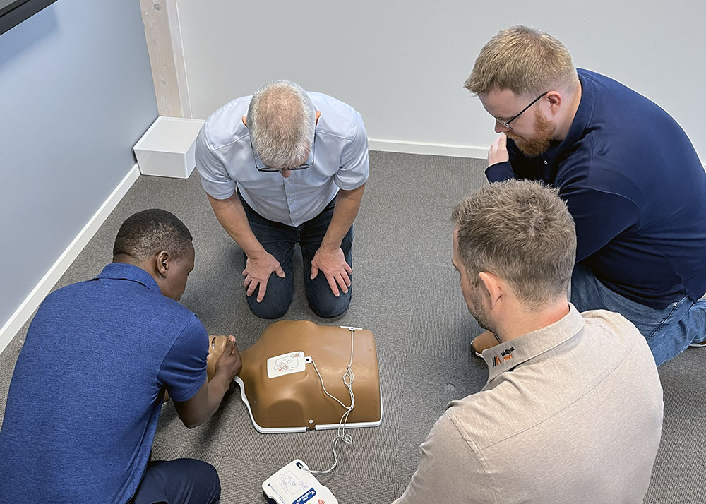 For nylig har vi også afholdt førstehjælpskursus på kontoret, hvor vi blandt andet blev instrueret i brugen af hjertestarteren. Det skaber en ekstra tryghed for os alle at vide, at vi både har hjertestarteren lige ved hånden – og at vi har lært, hvordan vi bruger den. Vi håber aldrig, vi får brug for den, men vi er klar, hvis det bliver nødvendigt.