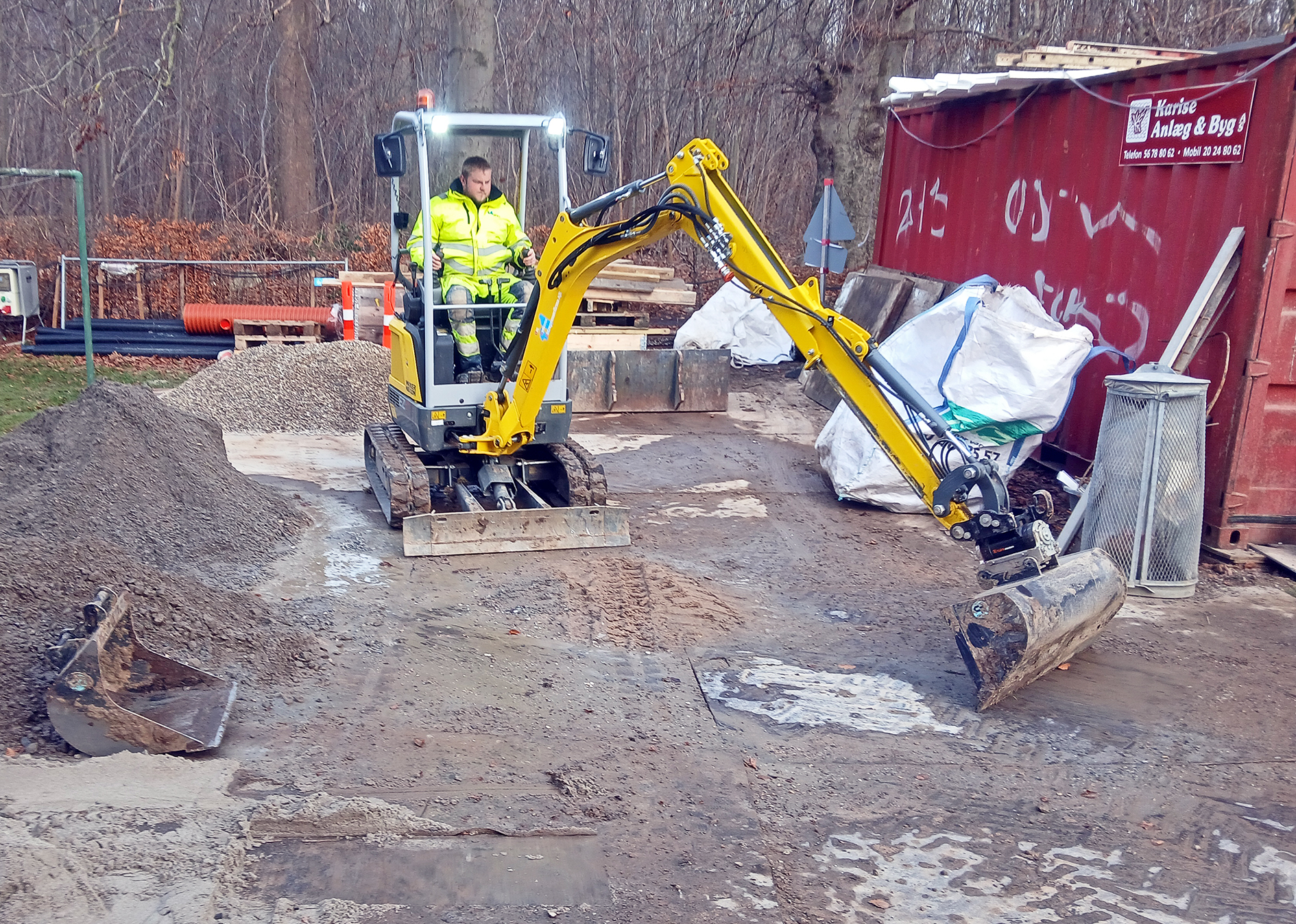 “Derimod har vi i Østkystens Entreprenørfirma valgt at eje vores entreprenørgrej” hvor det i vid omgang handler om små og store kloakarbejder. Her finder vi frem til det rigtige materiel i samarbejde med blandt andre salgskonsulent Jens Andersen hos maskinfirmaet Stemas A/S, som er dansk forhandler af Wacker Neuson-materiel. Ganske praktisk er det så også Wacker Neuson, som vi er blevet glade for at køre med. Vi har naturligvis også prøvet maskiner af andre mærker, men lige nu syntes vi, at Wacker Neuson har noget grej der passer ind i vores hverdag”, siger Karise-entreprenøren.